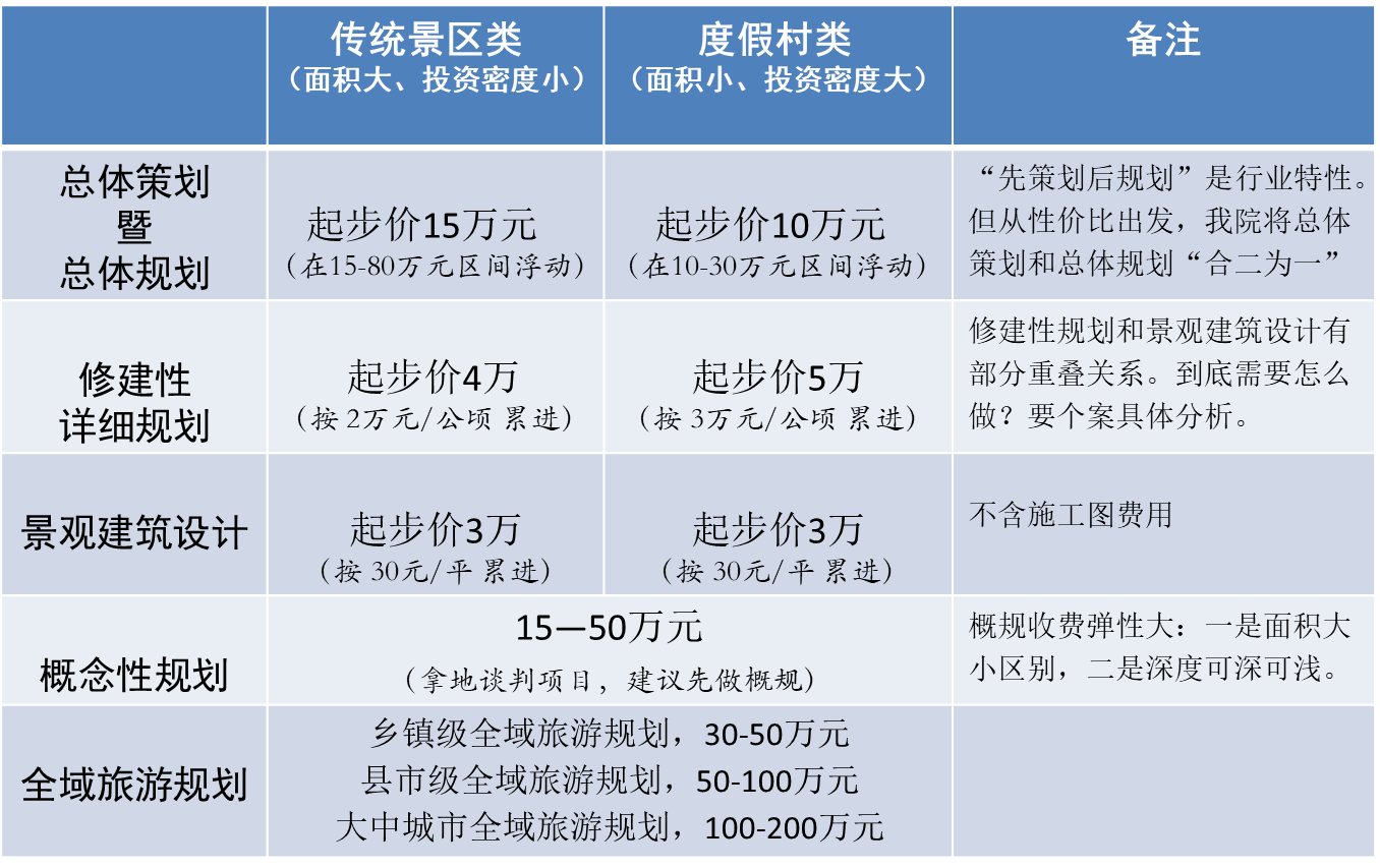 首先必須說(shuō)明,旅游規(guī)劃收費(fèi)并無(wú)所謂的“標(biāo)準(zhǔn)價(jià)格”,但很多客戶還是表示希望“知根知底”,所以至道規(guī)劃院就結(jié)合多年經(jīng)驗(yàn)及行業(yè)...